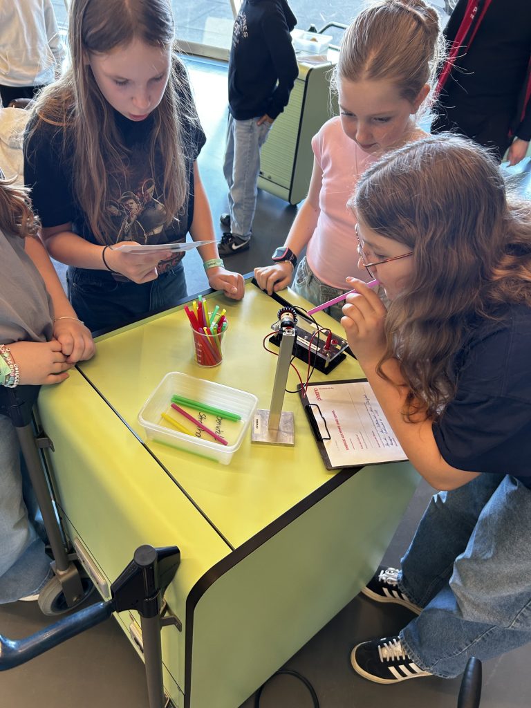 Besonders beliebt waren die interaktiven Stationen, bei denen die Kinder selbst Hand anlegen und naturwissenschaftliche Zusammenhänge direkt erleben konnten. Viele Experimente wurden mit leuchtenden Augen mehrfach wiederholt – ein klares Zeichen für echte Begeisterung.