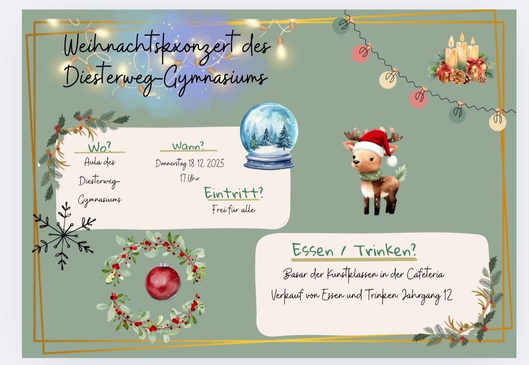 Mit stimmungsvollen Liedern, festlichen Klängen und beeindruckenden musikalischen Beiträgen sorgte unser Weihnachtskonzert 2025 für eine ganz besondere Atmosphäre in der Aula. Schülerinnen und Schüler verschiedener Jahrgänge präsentierten gemeinsam mit Chor und Instrumentalensembles ein abwechslungsreiches Programm, das das Publikum auf die Weihnachtszeit einstimmte.